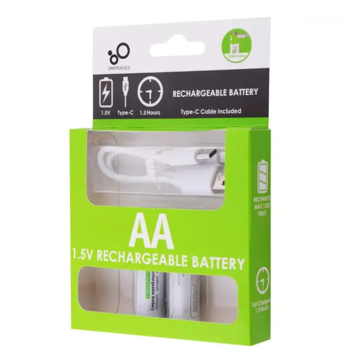 Smartoools Rechargeable Battery АА – удобные батарейки, которые можно перезаряжать до 1200 раз благодаря разъему Type-C.