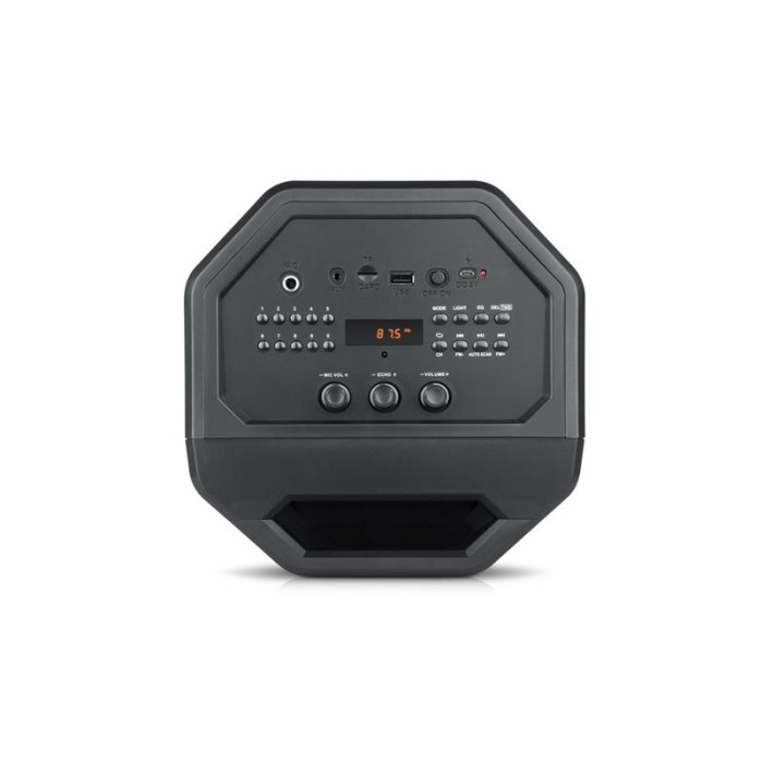 Мультимедійна портативна акустична система REAL-EL X-757 є сучасним пристроєм з RGB підсвічуванням і високоякісним звучанням. Завдяки широкому спектру функцій "бумбоксу", ви можете насолоджуватися музикою, підключаючи мобільні пристрої, ПК, телевізори, ноутбуки та інші пристрої як через AUX, так і через Bluetooth. Роз\'єми USB та Micro SD card дозволяють відтворювати аудіофайли з flash-накопичувачів. X-757 ідеально підходить для використання на відкритому повітрі завдяки потужному літій-іонному акумулятору на 4000 mAh 7.4V, що забезпечує тривалий час роботи. Функція караоке порадує любителів співу.
