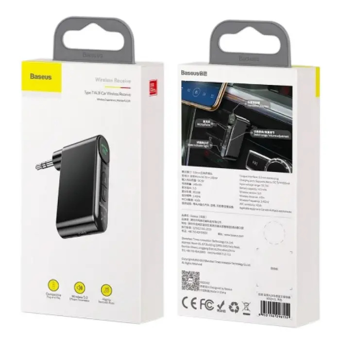 Блютуз - бездротова гарнітура «вільні руки», яка дозволяє приймати сигнали між сумісними пристроями на відстані. Bluetooth використовує високошвидкісну передачу даних на відстань до 10 метрів. Пристрій має найбільш поширений режим передачі аудіосигналу, який підтримується всіма сучасними версіями мобільних пристроїв. Стерео гніздо - 3,5 мм. Bluetooth Baseus AUX MP3 WAV може працювати як від вбудованого акумулятора, так і з підключеною зарядкою. Адаптер оснащений батареєю потужністю 145 мАг, тому її заряду вистачає на 10 годин відтворення музики. Зарядити акумулятор можна за допомогою кабелю Micro-USB, що йде у комплекті.