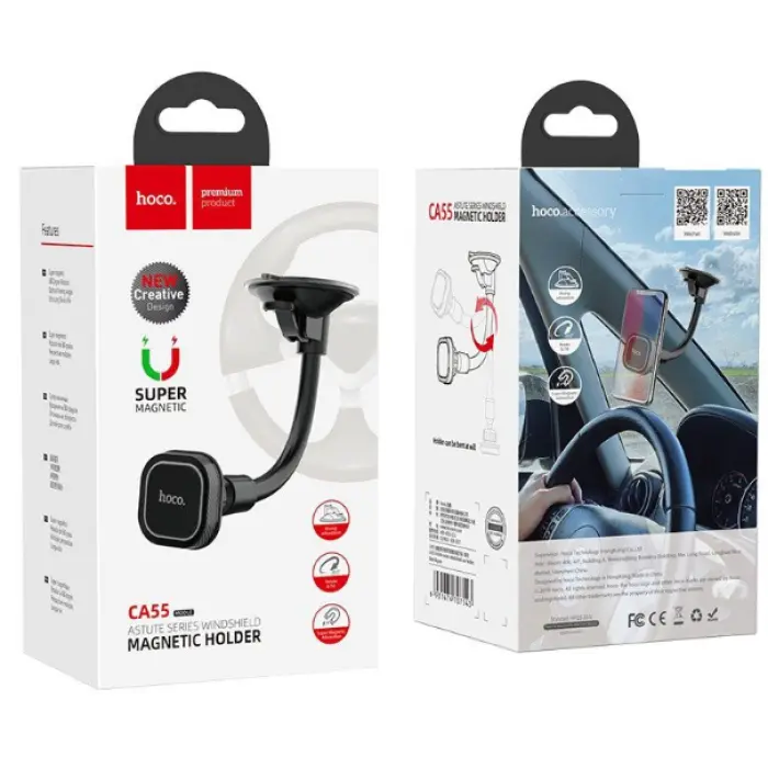Автодержатель Hoco СА55 – надежный автомобильный держатель телефона, который станет неотъемлемым атрибутом салона вашего авто. Автодержатель размещается с помощью присоски, которая крепко фиксируется на лобовом стекле. Гаджет надежно закрепляется с помощью магнита. Фиксация телефона на держателе осуществляется посредством металлической пластины на обратной стороне задней крышки телефона или под чехлом. Универсальное вращение позволяет выставить девайс в удобное положение.