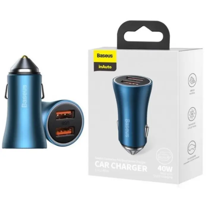 Автомобильное зарядное устройство Baseus Golden Contactor 2USB QC 40W Синий