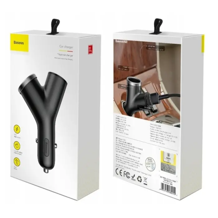 Автомобильное зарядное устройство Baseus Y-Type 3.4A +Lighter Black, Чёрный