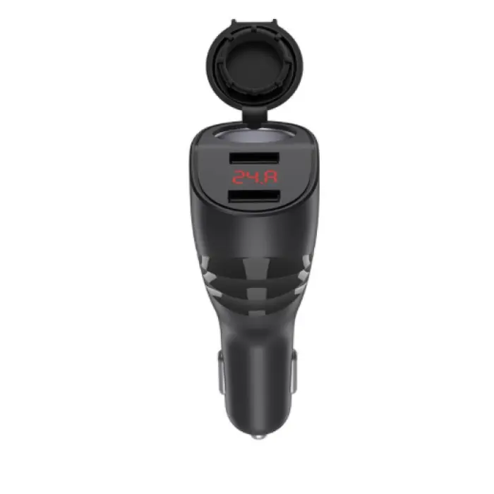 Автомобильное зарядное устройство HOCO Z34 - это универсальный, стильный, а главное мультифункциональный аксессуар. Его 2 USB-порта с автораспределением 2.4а - 3,1А можно использовать для быстрой подзарядки ваших гаджетов - смартфона, планшета, фотоаппарата, навигатора, регистратора или других приборов, учитывая совместимость портов и параметры напряжения, тока, которые освещаются на специальном LED-экране . А также АЗП Hoco Z34 можно использовать как обычный прикуриватель с мощностью 96 Вт. Особенностью этой модели является то, что Вы можете использовать эти функции поочередно или одновременно, что очень удобно и комфортно во время длительных поездок за рулем автомобиля.