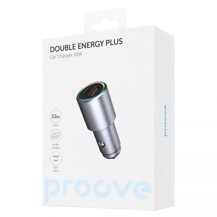 Автомобильное зарядное устройство Proove Double Energy Plus (USB+Type-C) 53W
