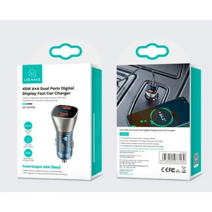 USAMS 45W Car Charger Adapter Fast Charging QC3.0 Pd Dual Usb – это мощный, компактный, элегантный, инновационный и стильный девайс с технологией быстрой зарядки Quick Charge 3.0 USB, а это значит, что зарядка Ваших гаджетов становится максимально быстрой. Зарядное устройство имеет 2 USB и поможет Вам быстро заряжать самые различные девайсы в пути в автомобиле. Данное зарядное устройство поддерживает современные стандартны быстрой зарядки – Quick Charge 3.0 и Power Delivery 3.0, SCP, MTK PE, AFC, VOOK, благодаря которым процесс восстановления заряда Ваших аксессуаров ускоряется в несколько раз. C помощью технологии Power Delivery 3.0 18W, iPhone X восполняет заряд на 50 процентов всего за полчаса. Обратите внимание, что для этого вам понадобится кабель с поддержкой PD.