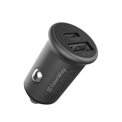 Автомобільний зарядний пристрій 1USB+1PD QC 38W Grey, Cірий