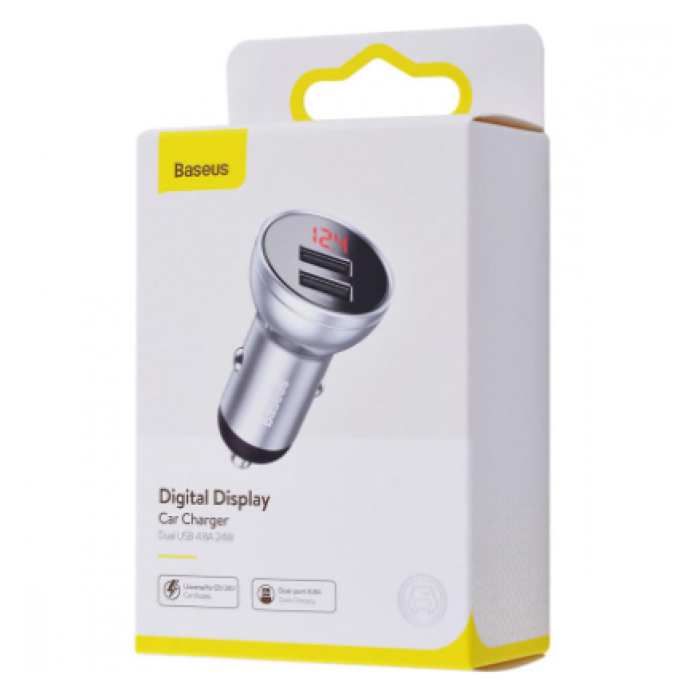 Автомобільний зарядний пристрій Baseus Digital Display 4.8A Silver, Срібний