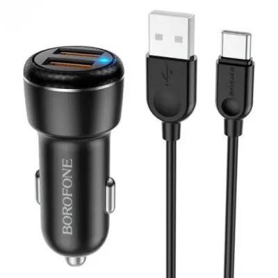 BOROFONE BZ17 Core — автомобільний зарядний пристрій з двома USB портами та підтримкою стандарту швидкої зарядки QC 3.0/PD. Постачається в наборі з кабелем USB-C довжиною 1 метр.