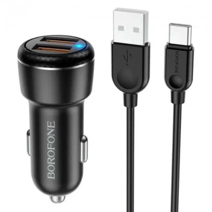 Автомобільний зарядний пристрій Borofone BZ17 2USB QC3.0 3A Type-C Black, Чорний