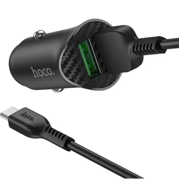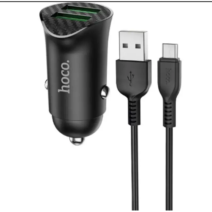 Автомобільний зарядний пристрій Hoco Z39 2USB QC3.0 + кабель MicroUSB Black, Чорний