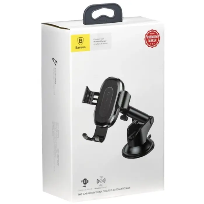 Baseus Osculum Type Gravity Car Mount with Wireless Charger високоякісний автотримач, під дією ваги смартфона, сам надійно затискає Ваш гаджет і міцно утримує під час їзди навіть по нерівній дорозі. Максимальна ширина тримача - 88 мм, а значить він з легкістю зможе захопити і великі гаджети. Тримач не приховує дисплей і не заважає огляду водія. Обов'язково стане незамінним помічником для Вас. Головною особливістю даного гаджета є вбудована в тримач бездротова зарядка, яка без проблем зможе швидко поповнити запас енергії сумісного з технологією смартфона. Для iPhone потужність становить фіксовані 7,5 Вт, в той час як Android гаджети можуть заряджатися на 10 Вт, в залежності від моделі. Розумна система захисту запобіжить перегріванню, перезарядці та вбереже від стрибків напруги. Завдяки тому, що сам утримуючий механізм розташований на ніжці з шарнірним кріпленням, ви можете розгорнути смартфон під будь-яким зручним для вас кутом. Вакуумна присоска в основі тримача надійно утримає всю конструкцію разом зі смартфоном у будь-якому місці, де ви її встановите. Завдяки спеціальній формі, і двом рівням натягу ви можете бути впевнені в силі кріплення. Наприклад: тримач з легкістю може утримати вагу цілих 6ти літрів рідини. Корпус автотримача виконаний з авіаційного алюмінію, міцного і легкого, що гарантує довговічність і надійність аксесуара. При цьому тримач має дуже стильний вигляд і беззастережно точно впишеться в інтер'єр салону Вашого автомобіля.
