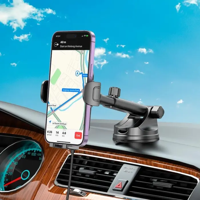 Hoco CA91 — це сучасний автомобільний тримач із функцією швидкої бездротової зарядки потужністю 15 В..