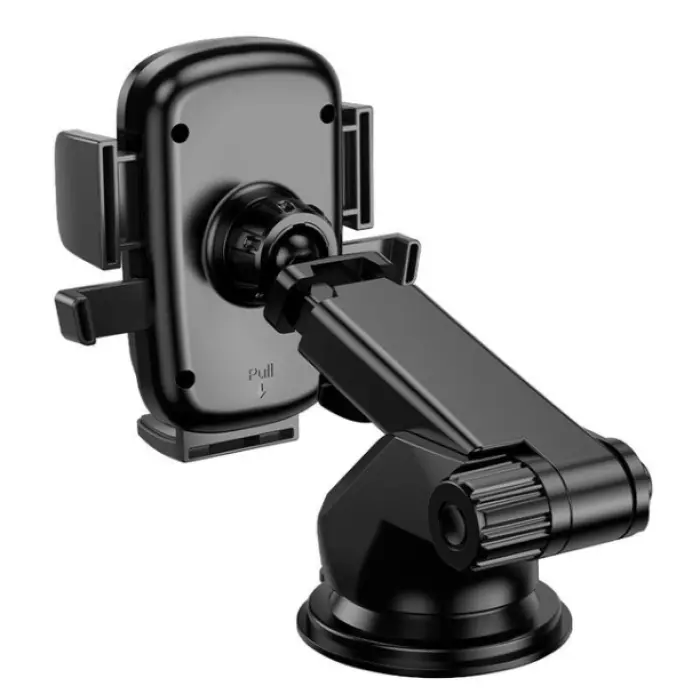 Вакуумна присоска з фіксатором дозволяє надійно закріпити тримач на лобовому склі або панелі приладів. Пристрій утримується стабільно навіть на нерівній дорозі або при різких маневрах.