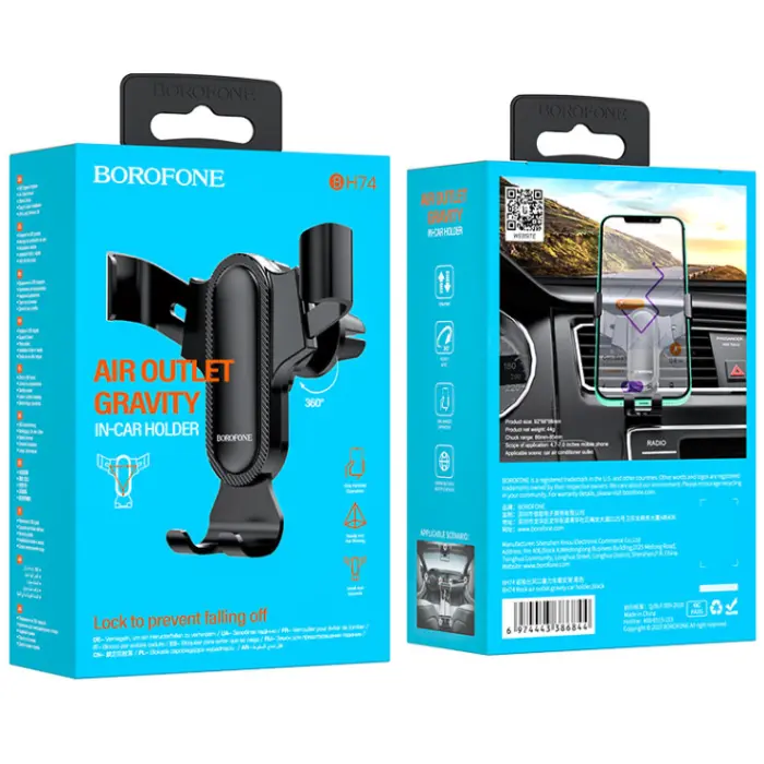 Не відволікатися в процесі їзди, не шукати місце в процесі використання телефону як навігатора водіям, а найчастіше пасажирам дозволить першокласний автотримач. Відомий бренд Borofone пропонує багатофункціональну модель BH74 для телефону. Надійно закріпити пристрій допомагає автозатискач (під власною вагою). Так що виключається будь-яка можливість падіння пристрою. Місце встановлення Borofone BH74 в салоні машини - вентиляційні грати, для цього передбачений затискач. Тримач успішно поєднує як високу функціональність, а й сучасний зовнішній вигляд. Конструкція девайса монолітна на шарнірі, а висока якість матеріалів гарантує великий період експлуатації. Кут повороту 360 ° дозволить просто розгорнути телефон у потрібному положенні.