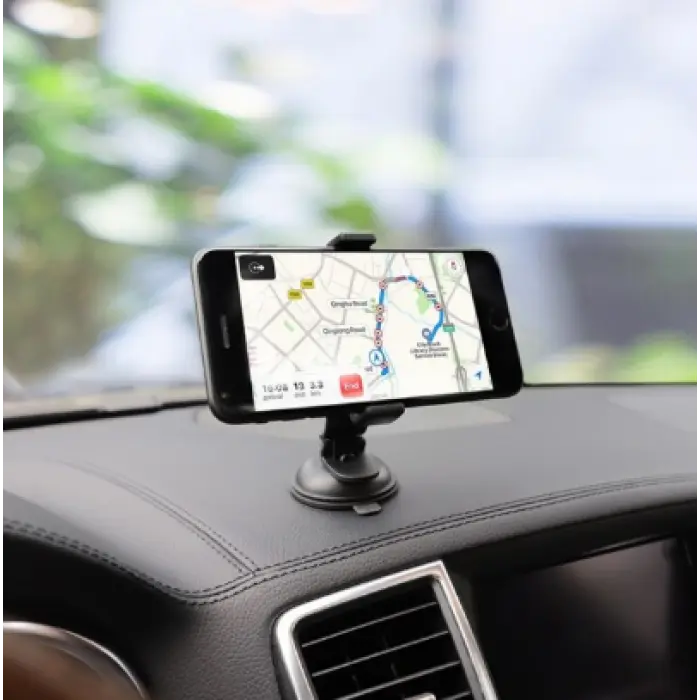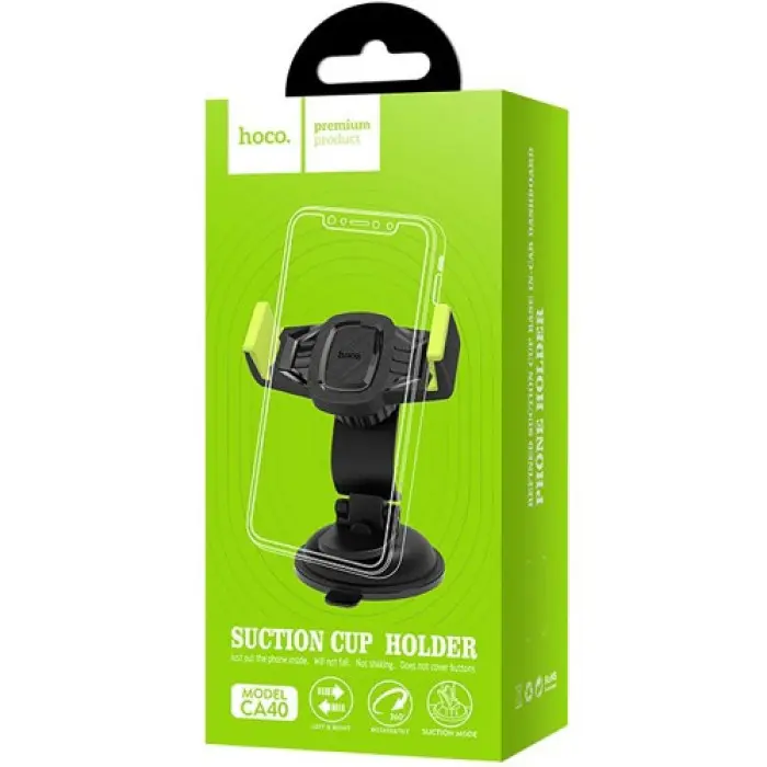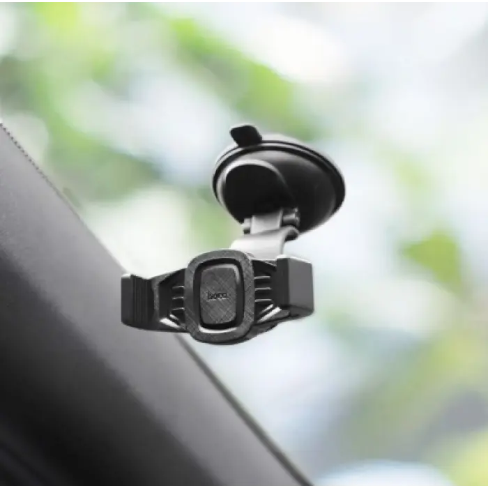 Універсальний автомобільний тримач на панель приладів або лобове скло HOCO CA40 чорного кольору. Тримач кріпиться за рахунок вакуумної присоски з липкою основою на будь-яку поверхню. Розсувні затискачі міцно утримують у ньому смартфон навіть на вибоїстій дорозі. Щоб вставити всередину тримача смартфон, потрібно висунути праву рамку. Рамки тримача обертаються на 360 градусів і дозволяють розмістити гаджет у зручному для Вас положенні. Шарнірне кріплення дозволяє розташувати телефон як у вертикальному положенні, так і в горизонтальному Завдяки компактним розмірам не блокує огляд і не займає місце. Естетичний зовнішній вигляд інтер'єру вашого автомобіля не буде порушено. Легкі, міцні та екологічно чисті матеріали (полікарбонат та ABS-пластик) забезпечують комфортне використання. У місцях зіткнення смартфона з тримачем зроблені м'які вставки для запобігання подряпинам і потертостям навіть після тривалого використання.