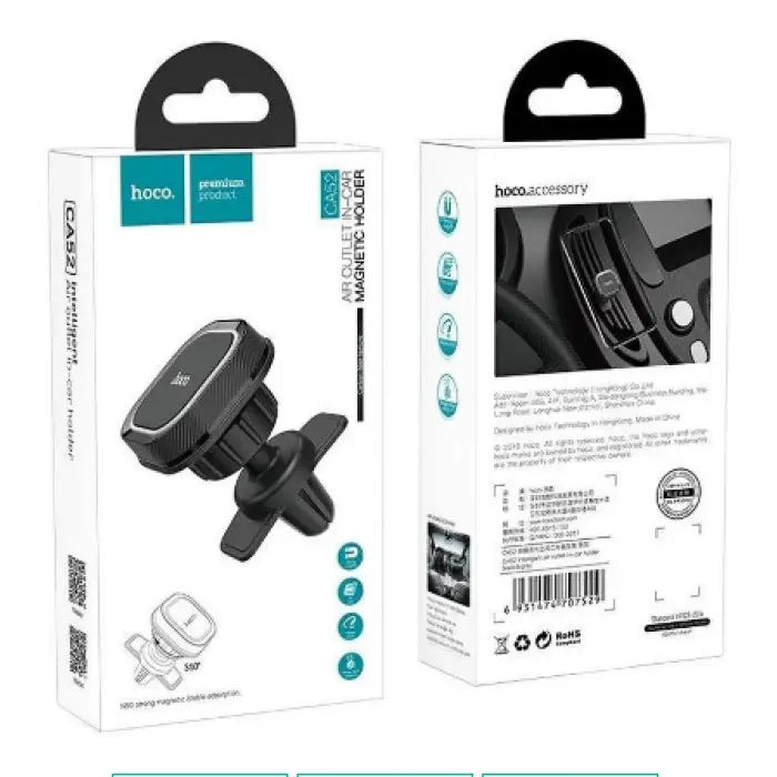 Автотримач Hoco CA52 Black, Чорний — це зручне та компактне рішення для фіксації смартфона в автомобілі. Завдяки надійному кріпленню на вентиляційну решітку, він забезпечує швидкий доступ до вашого пристрою без шкоди для безпеки під час водіння.
