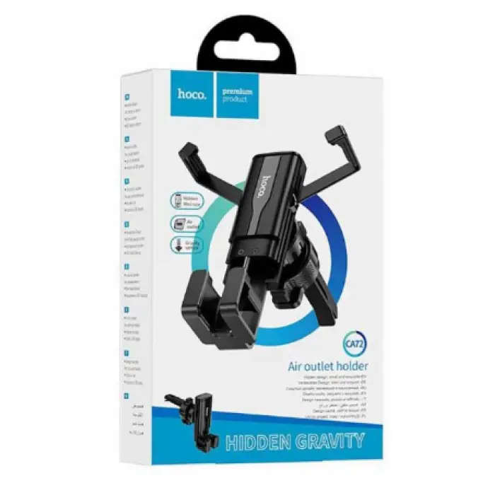 HOCO CA72 – це найновіша компактна модель автомобільного власника для телефону. Пристрій поєднує в собі матове та глянсове покриття. Виготовлений з ABS-пластику та металу. Телефон міцно та надійно кріпиться на тримачі за допомогою затискних блоків. Триточкове кріплення фіксує гаджет у будь-якому положенні. На затискних блоках є гумові вставки, які, крім якісної фіксації, дозволять виключити подряпини та потертості на смартфоні. Пружинний автотримач фіксується у вентиляційну решітку будь-якого типу з вертикальними або горизонтальними перекладинами.