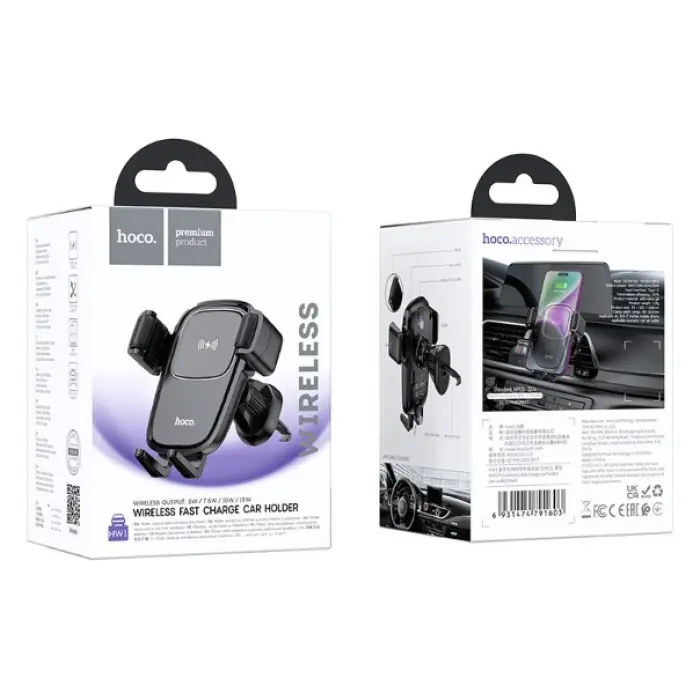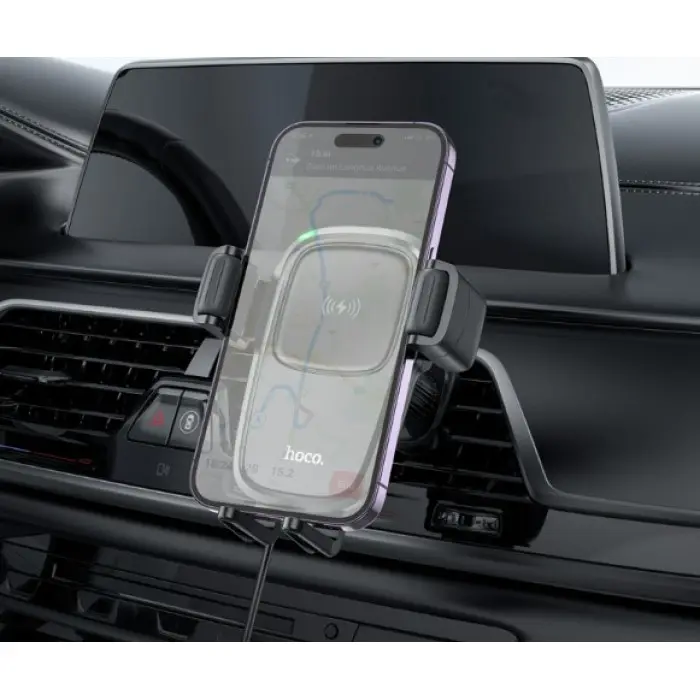Hoco CA91 — це сучасний автомобільний тримач із функцією швидкої бездротової зарядки потужністю 15 В..
