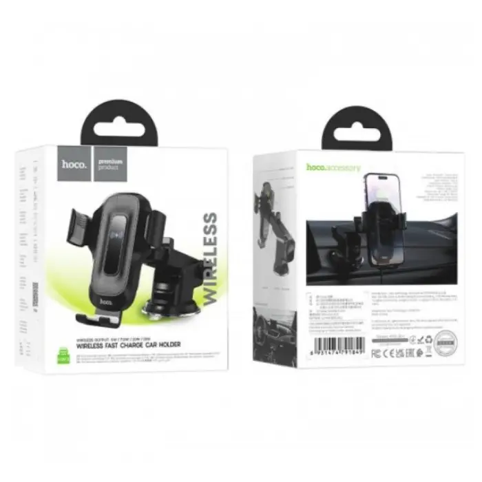 Hoco CA91 — це сучасний автомобільний тримач із функцією швидкої бездротової зарядки потужністю 15 В..