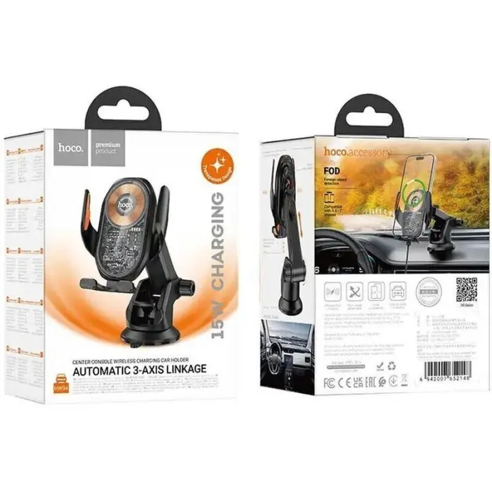 Завдяки універсальній конструкції та продуманій ергономіці, Hoco HW34 забезпечує зручне розташування смартфона, швидке встановлення й автоматичну зарядку без додаткових рухів. Стильний чорний корпус гармонійно впишеться в інтер’єр будь-якого автомобіля, а висока якість матеріалів гарантує довговічність.