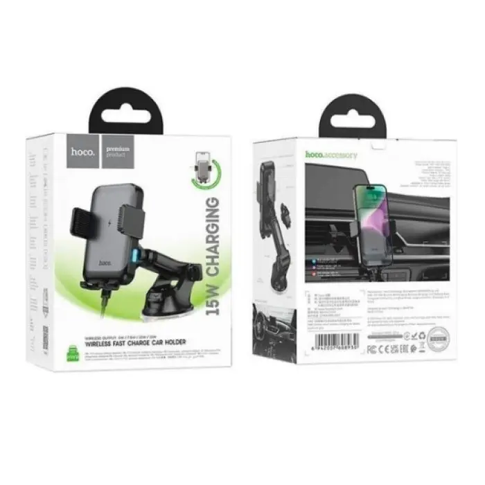 Hoco CA91 — це сучасний автомобільний тримач із функцією швидкої бездротової зарядки потужністю 15 В..