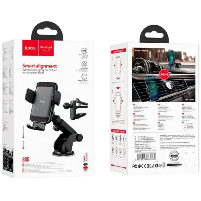 Hoco S35 — це чудове рішення для водіїв, які бажають тримати смартфон на видному місці та водночас заряджати його бездротовим способом. Максимальний комфорт та функціональність у кожній поїздці!
