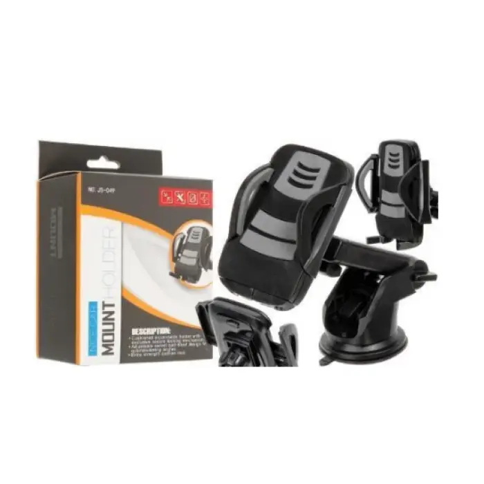 Автомобільний тримач JS-049 – це незамінний аксесуар для вашого автомобіля. Надійний автомобільний утримувач JS-049 призначений для закріплення мобільних пристроїв у салоні автомобіля. Тримач встановлюється на панель приладів або лобове скло за допомогою присоски. Утримуючі елементи мають м'які накладки для запобігання пошкоджень на смартфоні. Шарнірне обертання забезпечує можливість використання будь-якого пристрою як вертикально, так і горизонтально. Ще однією відмінною особливістю даного власника для телефону є телескопічний висувний механізм, який дозволить закріпити холдер у зручному місці вашого авто, і при цьому Ваш телефон буде в межах досяжності руки.