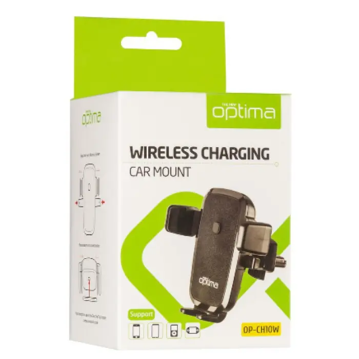 Автомобільний тримач із бездротовою зарядкою Optima OP-CH10W – це універсальний та дуже корисний у салоні будь-якого автомобіля аксесуар. Він призначений для надійної та безпечної фіксації смартфонів та здатний поєднувати цей процес із зарядкою гаджета, якщо той підтримує бездротову зарядку. Тримач встановлюється на решітку повітроводу, тримаючи телефон у прямому доступі для рук та зручному для огляду місці.
