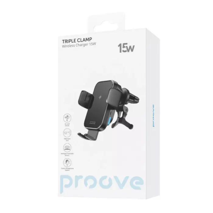 Автотримач Proove Triple Clamp 15W Black, Чорний