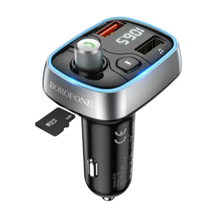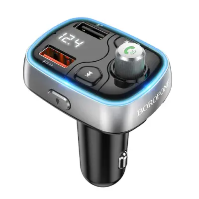 Модулятор Borofone BC32 - корисний аксесуар для тих, хто проводить багато часу за кермом. Цей апарат може розширити функціонал FM-приймача автомобіля, так як в поєднанні з ним допоможе без будь-яких проводів відтворювати музику з різних носіїв інформації. До того ж, модель оснащена мікрофоном, що надасть можливість приймати вхідні на смартфон дзвінки. Аксесуар виконаний в сучасному дизайні, має барвисту атмосферну підсвічування. Корпусні деталі модулятора виготовлені з міцного ABS пластику. На лицьовій панелі пристрою розташовані LED дисплей, кнопки управління, два USB роз'єму.