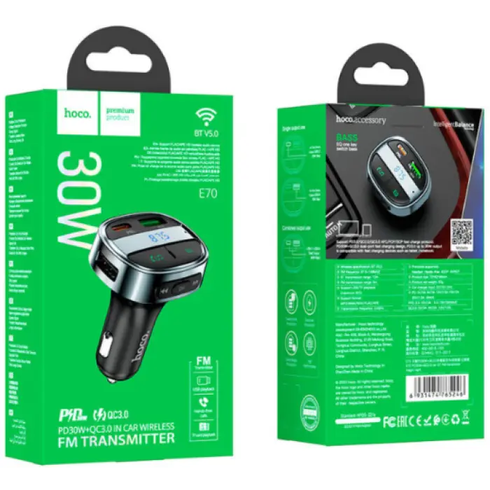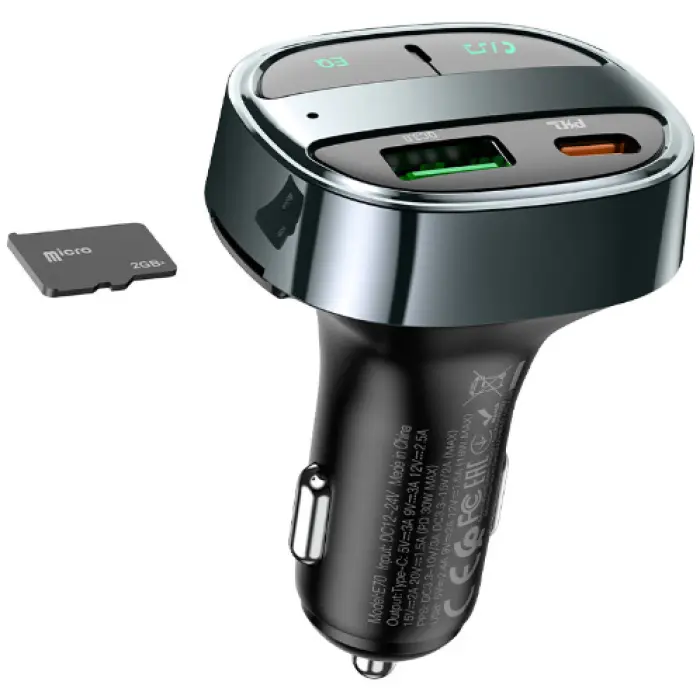 FM Трансмітер Hoco E70 PD 30W Black, Чорний