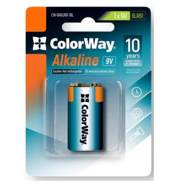 Батарейка ColorWay 6LR61 (Крона) 9V 1 шт щелочная