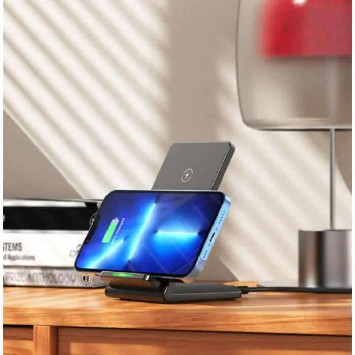BOROFONE BQ16 Cool creation – это удобное устройство-помощник 2 в 1: беспроводная зарядка и одновременно настольный держатель для смартфона. Его универсальная конфигурация позволяет держать телефон как в вертикальном, так и в горизонтальном положении.
