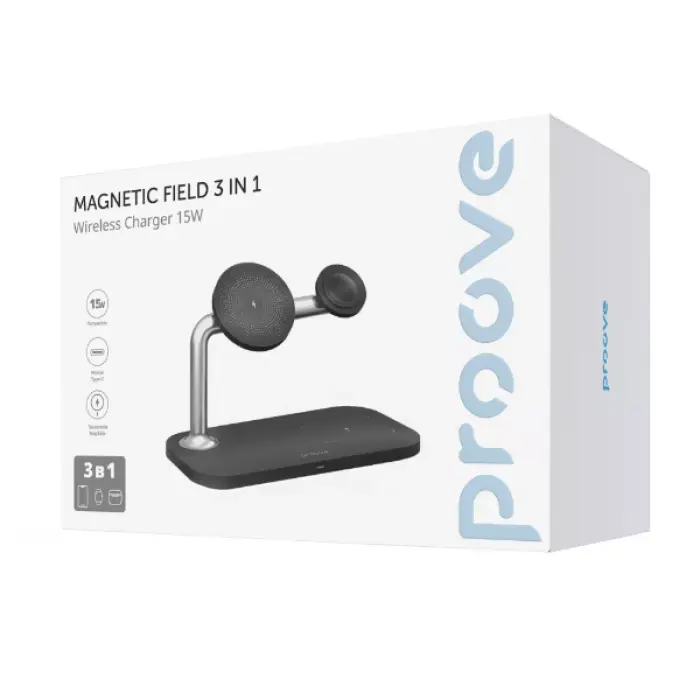 Беспроводное зарядное устройство Proove Magnetic Field 3in1 15W Black, Чорний