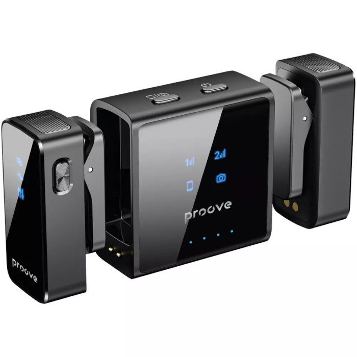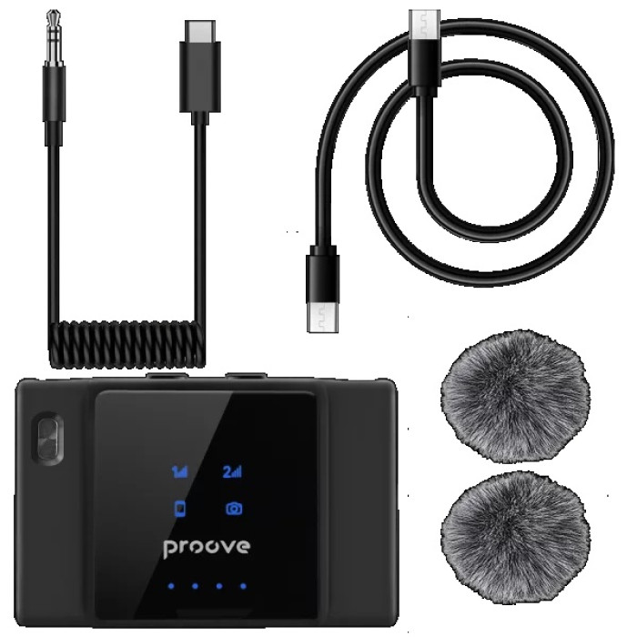 Proove ToneLine имеет интуитивно понятный интерфейс и простое подключение. Комплект включает всё необходимое для быстрого начала работы — микрофон, беспроводной передатчик и приемник, зарядные кабели и инструкцию. Благодаря продуманной системе настройки устройство быстро синхронизируется и готово к использованию прямо из коробки.