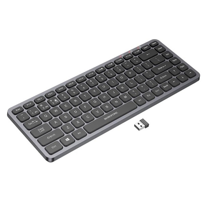 Бездротова клавіатура Borofone BG16, Чорно-сірий — стильна та компактна клавіатура для комфортної роботи за ПК, ноутбуком або планшетом без зайвих проводів. Ідеальна для дому, офісу та навчання.