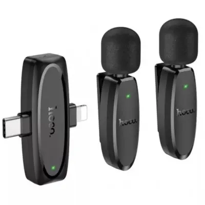 Бездротовий петличний мікрофон Hoco L15 Lightning + Type C Чорний