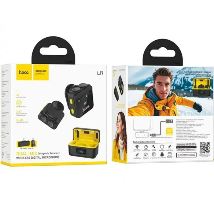 Бездротовий петличний мікрофон Hoco L15 Type-C Black, Чорний — це компактний і зручний пристрій для якісного запису звуку на смартфони, планшети чи інші пристрої з роз\'ємом Type-C. Ідеально підходить для блогерів, журналістів, викладачів, онлайн-тренерів або всіх, хто створює контент.