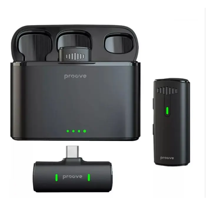 Бездротовий петличний мікрофон Proove Demo Type-C, Чорний — це компактний і зручний пристрій для якісного запису звуку на пристроях із роз\'ємом USB Type-C. Ідеально підходить для блогерів, журналістів, викладачів та всіх, хто створює аудіо- та відеоконтент.