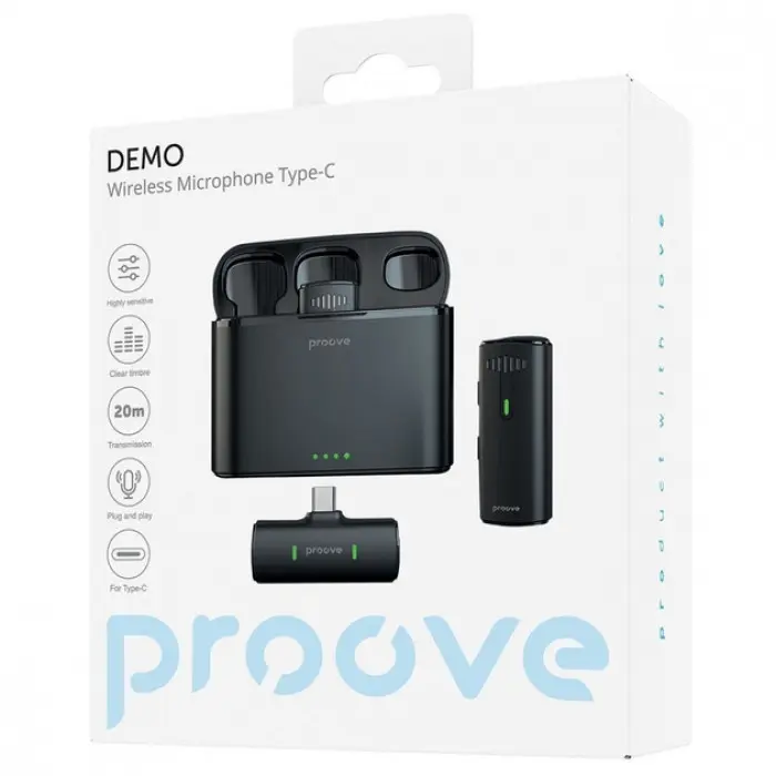 Proove Demo Type-C ідеально підходить для запису інтерв\'ю, ведення відеоблогів, онлайн-лекцій, стрімів та інших ситуацій, де необхідний якісний звук без обмежень дротами.