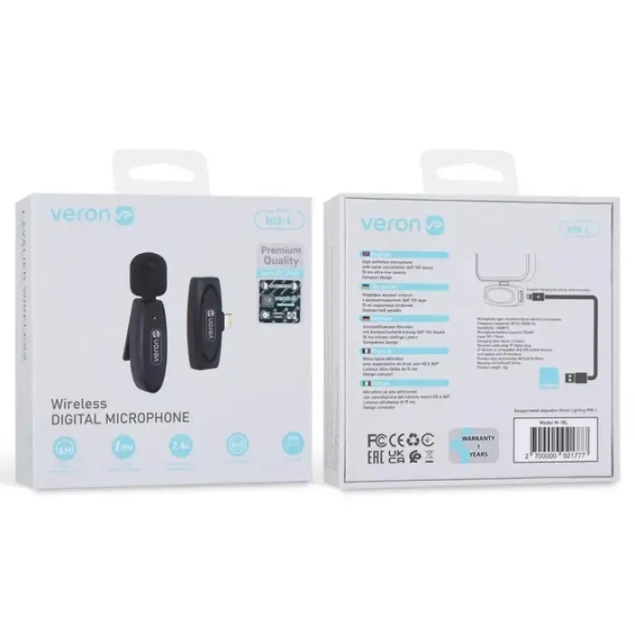 .Veron M18-L — це зручний та універсальний бездротовий петличний мікрофон із роз\'ємом Lightning, спеціально створений для користувачів iPhone та iPad. Він забезпечує якісний запис голосу без перешкод, ідеально підходить для відеоблогів, стрімінгу, онлайн-уроків, інтерв’ю чи подкастів.
