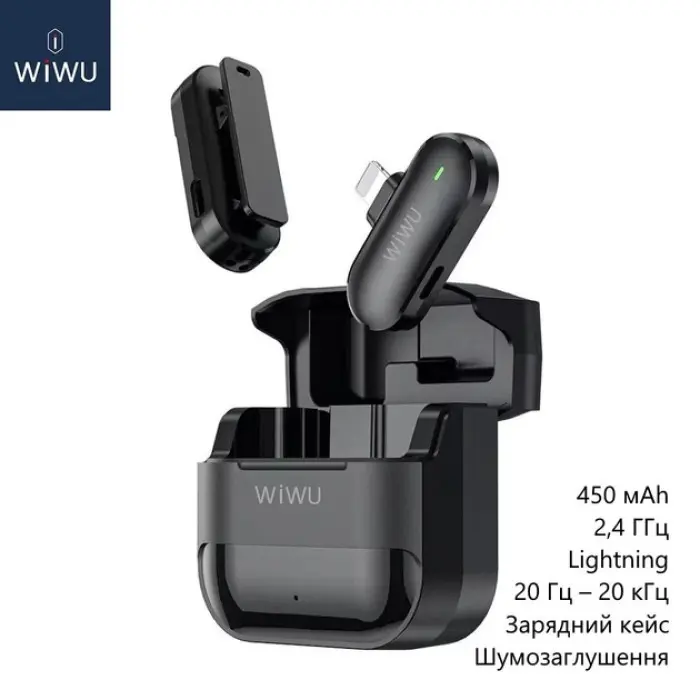 Бездротовий петличний мікрофон WIWU Wi-WM001 Lightning Black — це надійний вибір для всіх, хто шукає зручний і якісний мікрофон для своїх записів на пристроях Apple.