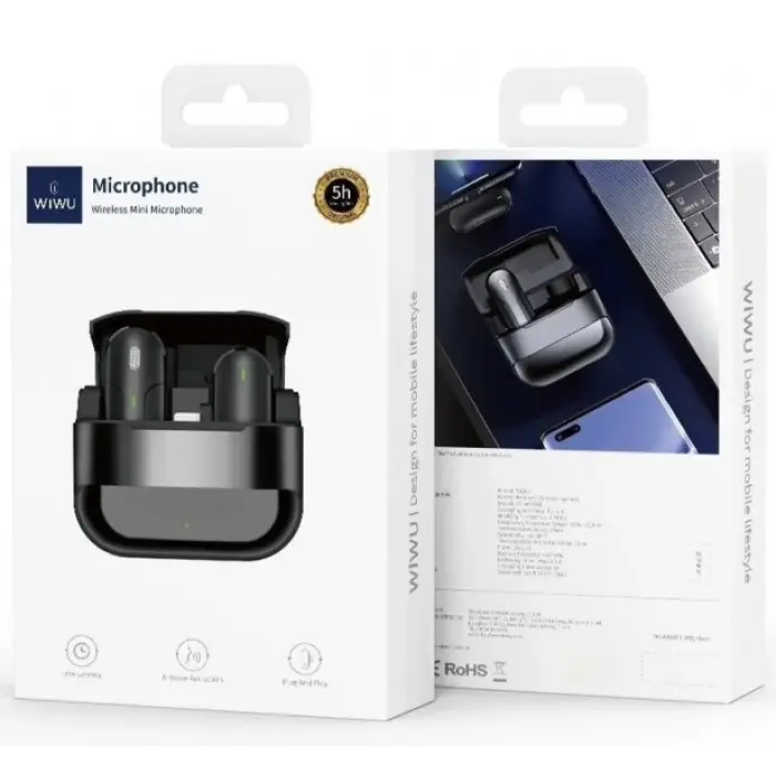 Бездротовий петличний мікрофон WIWU WI-WM001 Type-C Black — це надійний і зручний пристрій для запису професійного аудіо, який ідеально підходить для всіх, хто цінує якість і комфорт у роботі зі звуком.