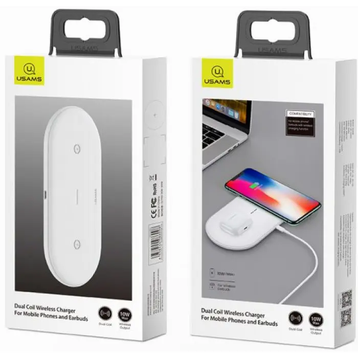 Бездротовий зарядний пристрій Usams CD120 Dual Coil Белый