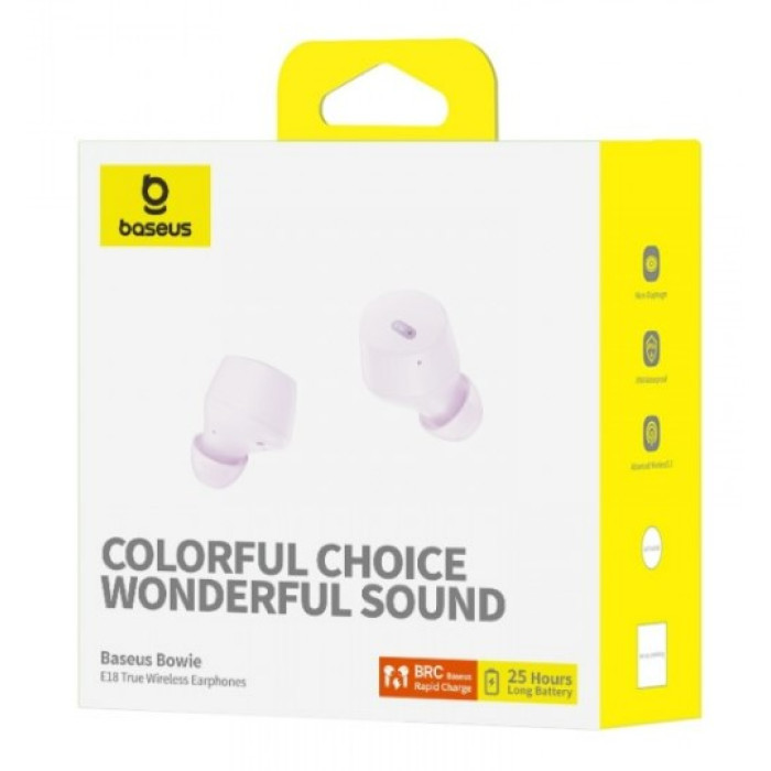 Безпровідні навушники Baseus Bowie E18 TWS Фіолетові — стиль, комфорт та довга автономність