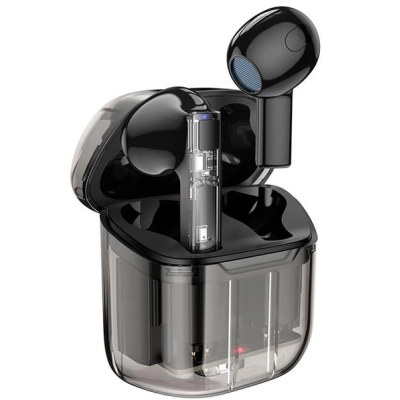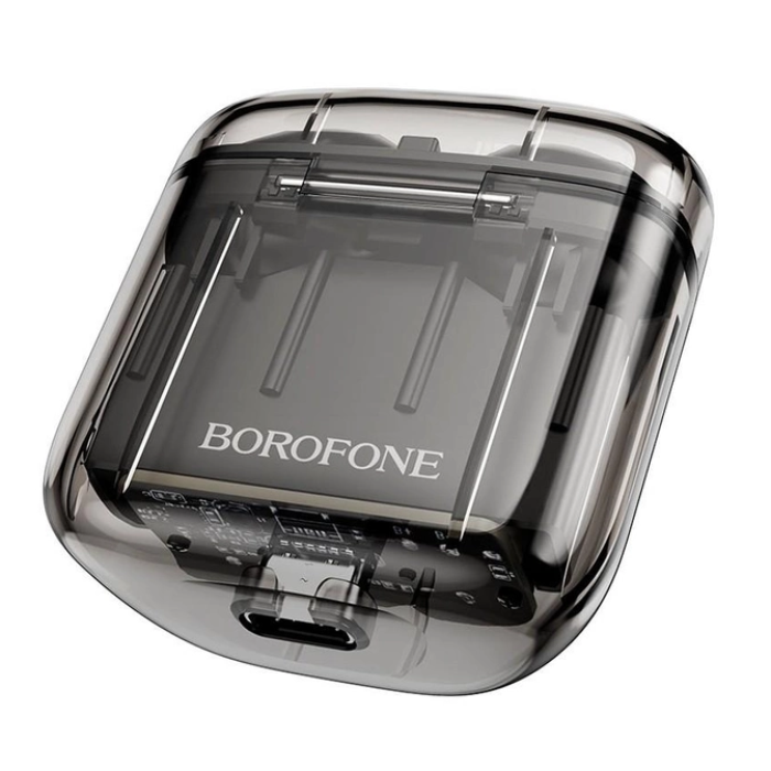 Блютуз стерео гарнітура Borofone BW23 приверне увагу поціновувачів унікальних, вишуканих аксесуарів та справжніх меломанів із високими вимогами до якості звуку. І навушники-вкладиші, і їх зарядна док-станція виконані з прозорими деталями і глянсовою поверхнею, що дозволить розглянути деякі внутрішні компоненти, створює візуальний ефект, що зачаровує, і забезпечить користувачеві приємні тактильні відчуття. Завдяки своїй ергономічній формі, вушні елементи зручно розташовуються у вухах і щільно фіксуючись не випадають при різких рухах, не створюють дискомфорту навіть при тривалій експлуатації. Кожен із навушників може використовуватися окремо та бути ведучим, оснащений модулем Bluetooth V5.3, сенсорною панеллю для простого керування, LED індикатором та відмінним мікрофоном. Місткість їх вбудованих акумуляторів становить 30mAh, чого вистачить на 4 години роботи в режимі відтворення або розмови, зарядний кейс з батареєю ємністю 250mAh надасть можливість швидко заповнити рівень заряду.