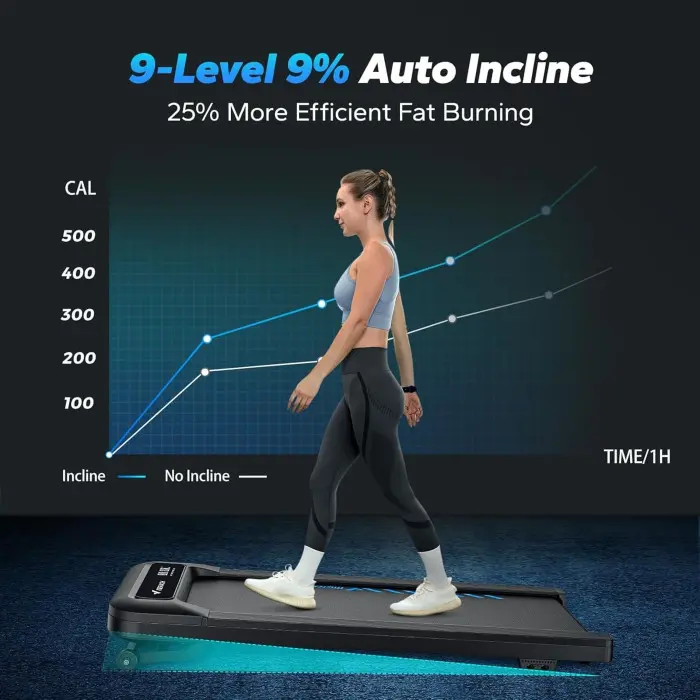 Електронне регулювання кута нахилу до 9° дозволяє підсилити навантаження, тренуючи м’язи ніг і сідниць, та підвищує ефективність спалювання калорій.