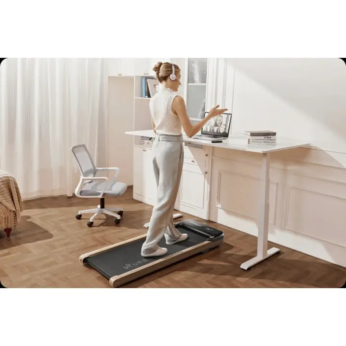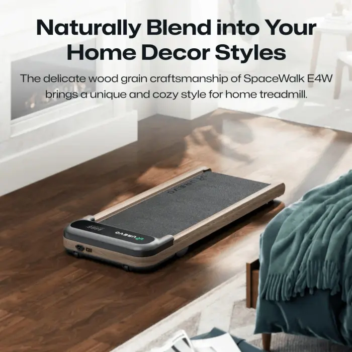 UREVO SpaceWalk E4W wood grain URTM026 — стильна, компактна і комфортна домашня бігова доріжка, яка поєднує функціональність і естетику. Вона забезпечує плавний хід, тиху роботу, ефективну амортизацію та зручний LED‑дисплей для контролю тренувань, роблячи її чудовим вибором для щоденного руху і підтримки фізичної форми вдома.