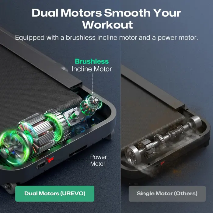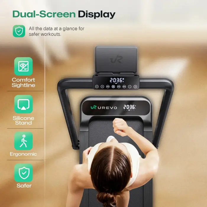 UREVO Strol 2S Pro ідеальна для домашніх тренувань. Компактні розміри і складний механізм дозволяють зберігати тренажер у невеликому приміщенні. Тиха робота двигуна гарантує комфорт навіть у вечірній час, а амортизаційна система робить тренування безпечнішими для колін та спини.