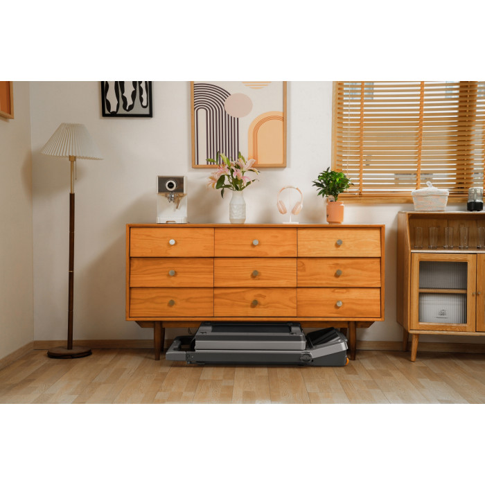 Складна бігова доріжка KingSmith Z3 Hybrid Black займає мінімум місця. Після тренування її можна легко скласти та зберігати вертикально або під меблями. Це робить модель однією з найкращих для невеликих квартир.